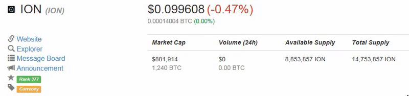 According to the Marketcap with 24h volume of zero, no dumping happened but I still sold to other investors (or as you say dumped) IONs???