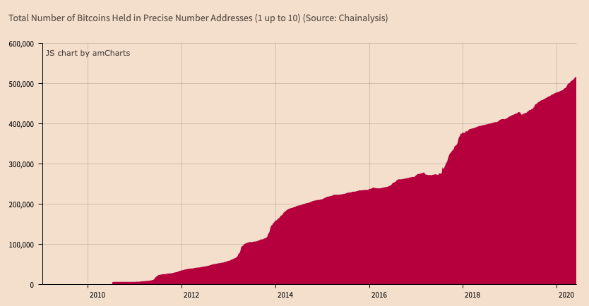 The number of addresses with 1 to 10 bitcoins: