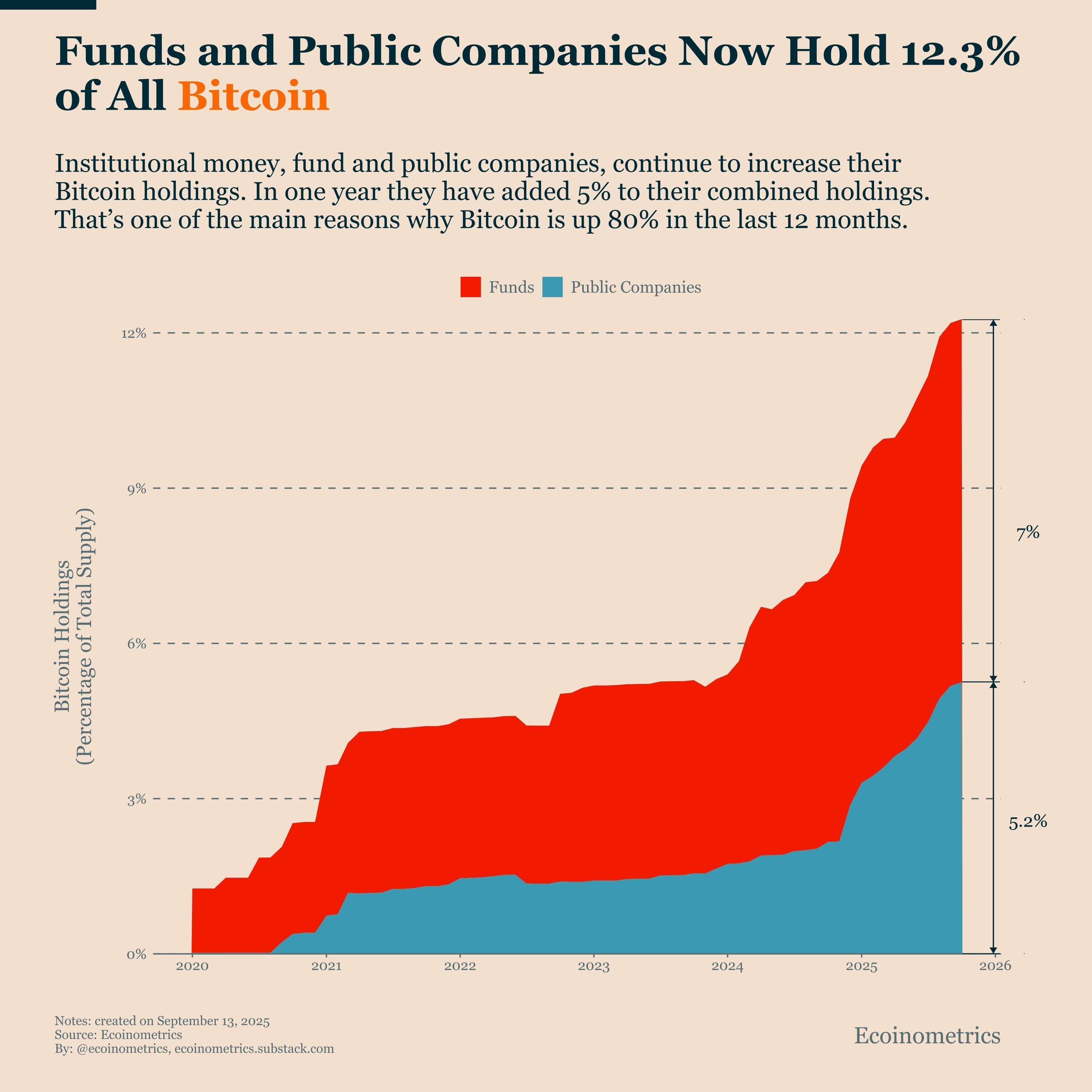 The billionaires, the public companies, and the professional asset managers currently holds 12.3% of ALL Bitcoin. That's not including the supply that nation-states have started to HODL in their vaults.