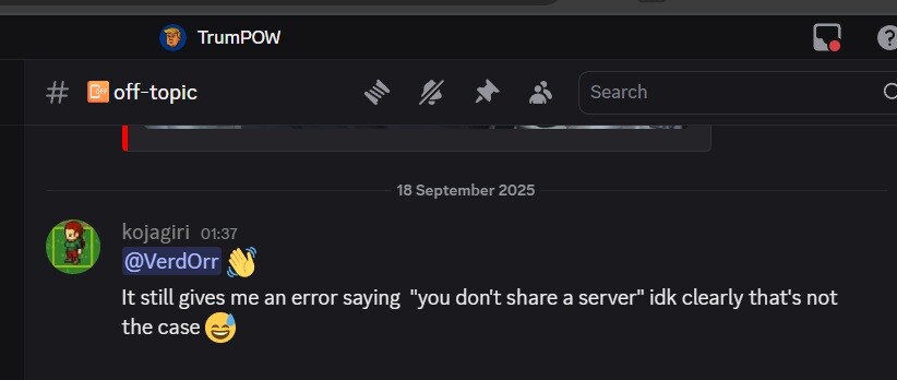 Here's the server invite for you (right clicked your ID and chose 'Invite')