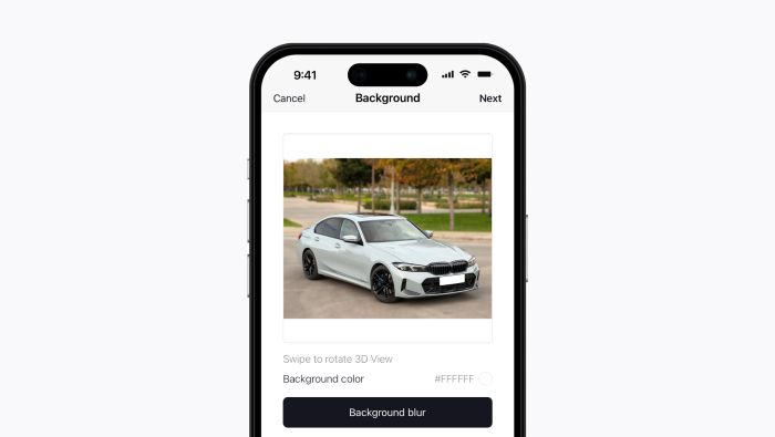 The 3DShot app allows you to blur the background of your 3D Views to make them more professional-looking. You can blur the background of any 3D View, even when shooting a car.