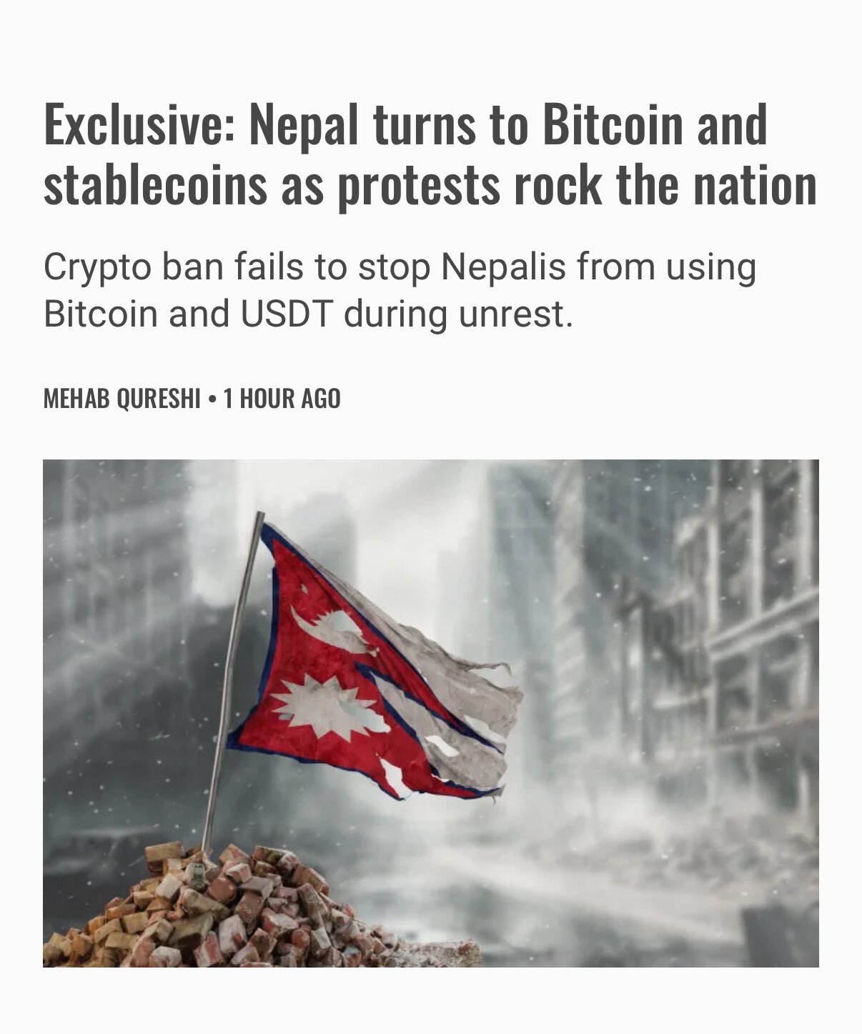 In Nepal, during the recent toppling of the previous regime, the protesters started using Bitcoin as a statement saying that the banks can't be trusted, that politicians can't be trusted.