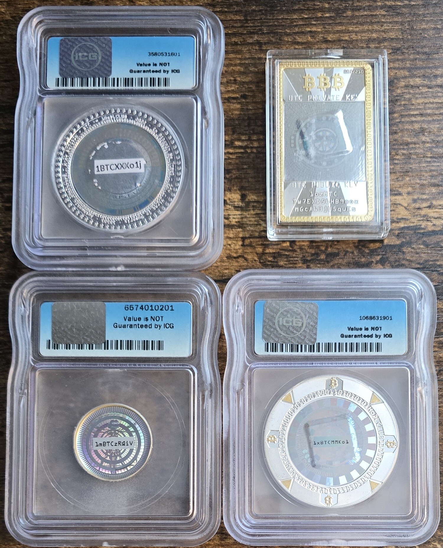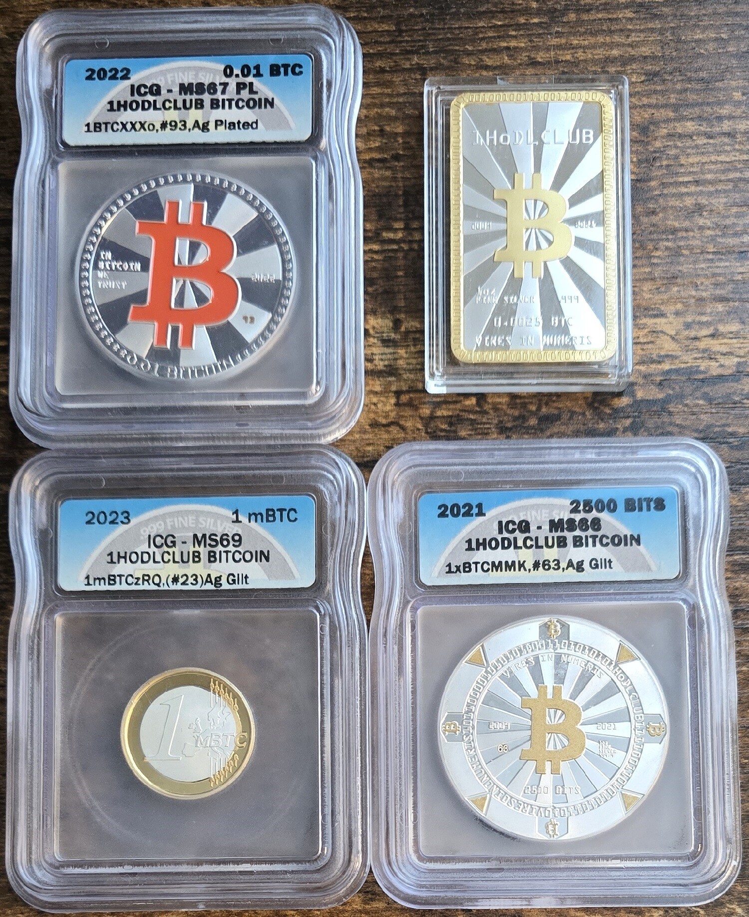 29/09/2025, 21:30:46 UTC LOT 1: 2022 1HodlClub Silver Plated DIY Coin 0.01BTC #93/210 "1BTCXXXo1j", plated brass ICG MS67PL