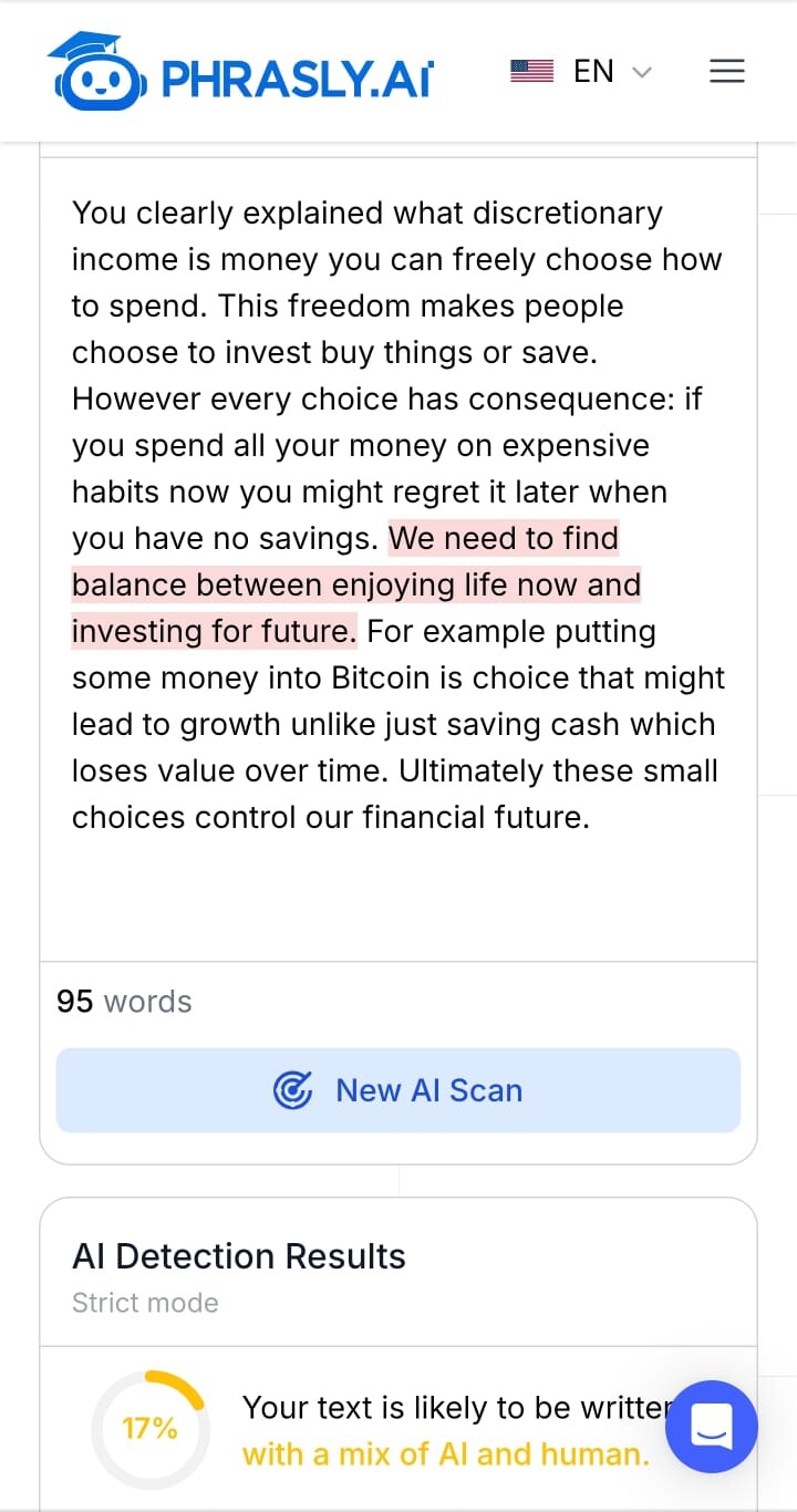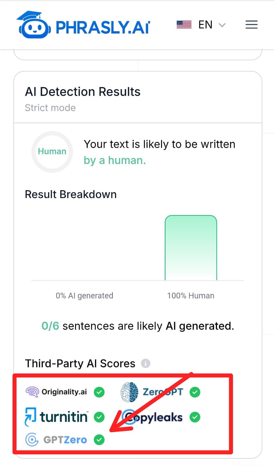 But I checked it on phrasly too which you mentioned in 4th post case and I googled it and found phrasly.ai. which also bypass GPTzero too but here I did not find any AI detection.