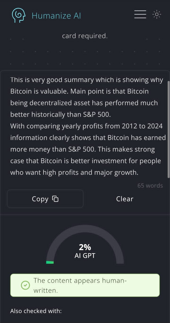 Let's talk about this. First one. You mentioned (humanizeai.pro) I just opened it up and here is the result.